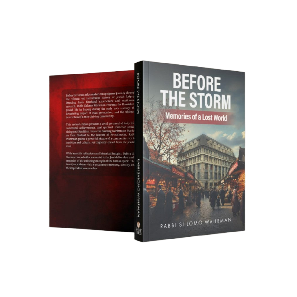 In "Before the Storm," Rabbi Wahrman shares personal stories and historical details about important figures like Horav Shimon Hurvitz, Horav Ephraim Carlebach, and Horav Moshe E. Rogosnitzky. The book contrasts the pre-war Jewish community with the post-war reality, as Rabbi Wahrman revisits Leipzig in 1980. His observations on the lasting impact of the war add a personal and emotional layer to the historical narrative, highlighting the dramatic changes and the tragic loss of life and culture.