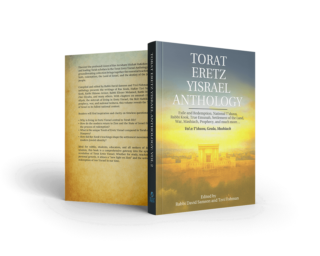Torat Eretz Yisrael Anthology, Volume 2 delves into the heart of the Jewish nation’s spiritual mission: teshuva, geula, and the unfolding process of Mashiach. This volume expands the groundbreaking vision introduced in Volume 1, illuminating the sweeping national and spiritual transformation described by Rav Avraham Yitzhak HaKohen Kook and the leading teachers of Torat Eretz Yisrael.